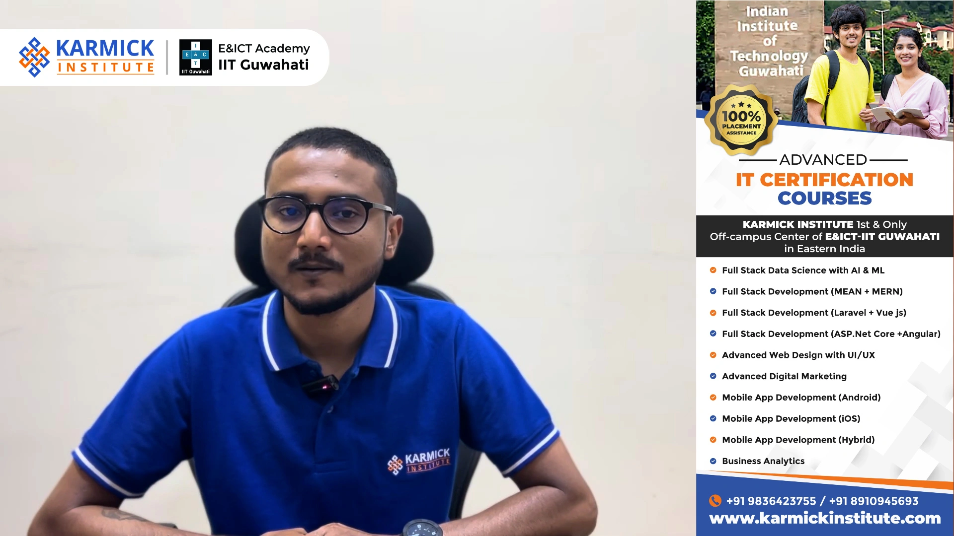 Industry-focused training, live projects, E&ICT Academy – IITG certification, & expert faculties are some of the benefits that the Karmick Institute provides to its students. You offer the best react JS, node.js course, and Angular JS complete course with 100% placement assistance.